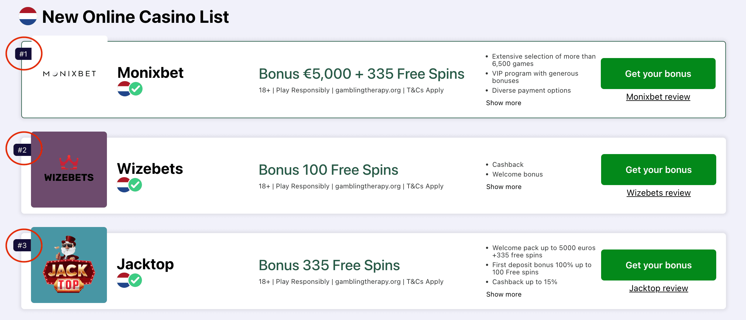 NewCasinoRank zet zich in om je te voorzien van de allernieuwste informatie over nieuwe online casino's. Ons team verzamelt uitgebreide data met behulp van geavanceerde automatiseringstools om deze casino's te rangschikken op basis van innovatie, promoties en de algehele gebruikerservaring. Deze methode garandeert dat onze ranglijsten altijd actueel en diepgaand zijn. Lees verder om meer te ontdekken over ons beoordelingsproces!